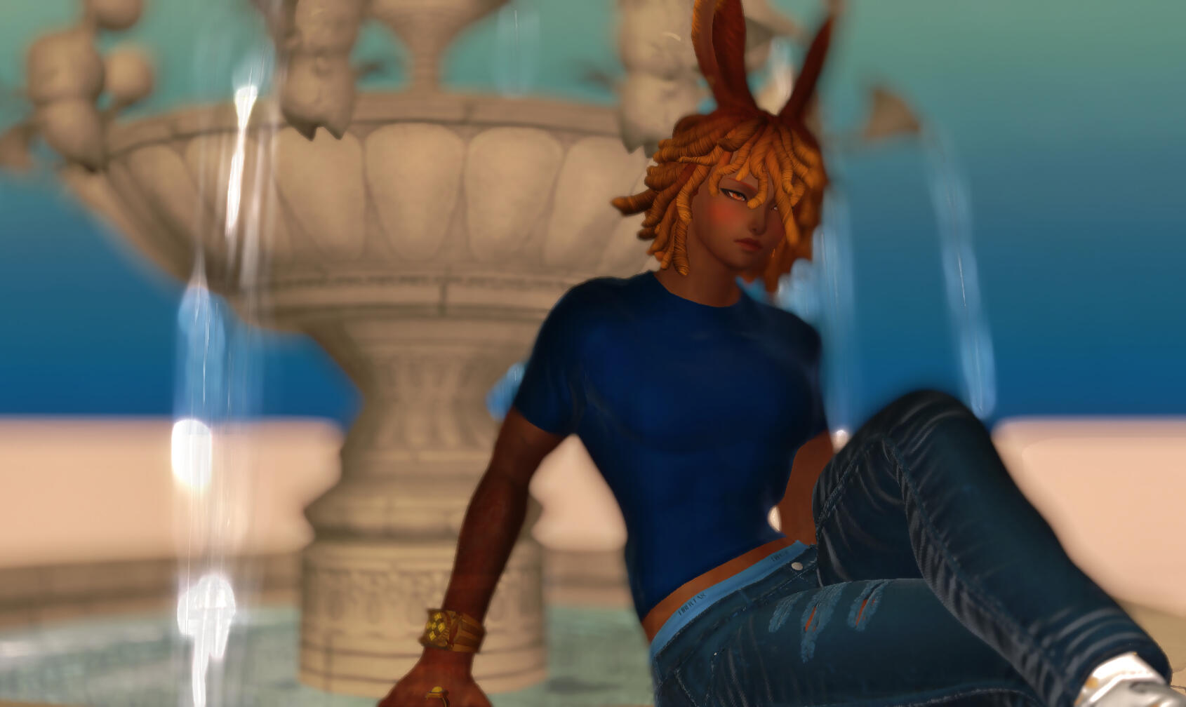 Long before his birth, his parents committed the unthinkable—they abandoned the strict isolation of the Golmore Jungle and fled across the sea, seeking a life unbound by the Green Word. They settled in vibrant Thavnair, where spices perfumed the air and every street echoed with music and color. It was there, far from the shadowed canopy of the Wood, that he entered the world—an anomaly among his kind, raised not in silence, but in a tapestry of culture, trade, and stories.From an early age, he absorbed the rhythms of Thavnairian life: bazaars bustling with travelers, dockworkers shouting greetings across the wharves, dancers spinning flame like threads of gold. He grew into a free spirit—outspoken, curious, and eager to meet any soul who crossed his path. No tale was too small, no stranger too foreign; he sought connection with an open heart and a mischievous smile.Over the long decades, his natural agility and keen senses shaped him into a formidable combatant, though he never wielded his skill for glory. Coin, however, has its temptations. When wanderlust carried him across the coasts, he slipped—almost accidentally—into the world of smuggling. Thavnair’s bustling trade routes and shadowed ports made the transition all too easy. Soon he found himself ferrying illicit goods, navigating secret channels, and crossing paths with pirates whose loyalties shifted like the tides.The life was dangerous, intoxicating, and ultimately scarring. He learned to fight not for sport, but for survival. He witnessed betrayals in moonlit harbors and forged alliances in smoke-filled dens. Though he eventually severed ties with the smuggling rings, the past clings to him like salt on the skin. Some debts remain unpaid. Some names he would rather forget.Seeking stability without surrendering freedom, he eventually found his way to Hotel Stardust, a place where eccentricity, elegance, and indulgence intertwine. There he became a concierge—equal parts guide, confidant, and problem-solver. With effortless charm, he welcomes travelers from every walk of life, listening to their stories with the same warmth he did as a youth in Thavnair’s markets. Nothing pleases him more than easing a guest’s burdens or nudging their visit toward a memorable delight.And for those seeking more intimate companionship, he serves as a courtesan, offering comfort, connection, and pleasure with a tenderness born of centuries of joy and sorrow. He is neither ashamed nor secretive about this work. In his eyes, intimacy—emotional or physical—is just another language through which stories are told and hearts are understood.Now, at 285 years old, he walks a path entirely his own. A man shaped by color, conflict, laughter, and longing. A fighter with a gentle smile. A wanderer who has finally found a place worth returning to, even if he never stays for long.Some whisper he seeks redemption. Others say he’s simply chasing the next good story.